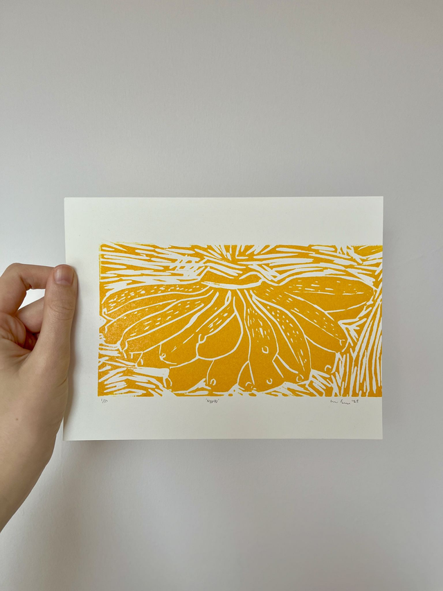The design is based on a photograph of some bananas by Pip Cree.