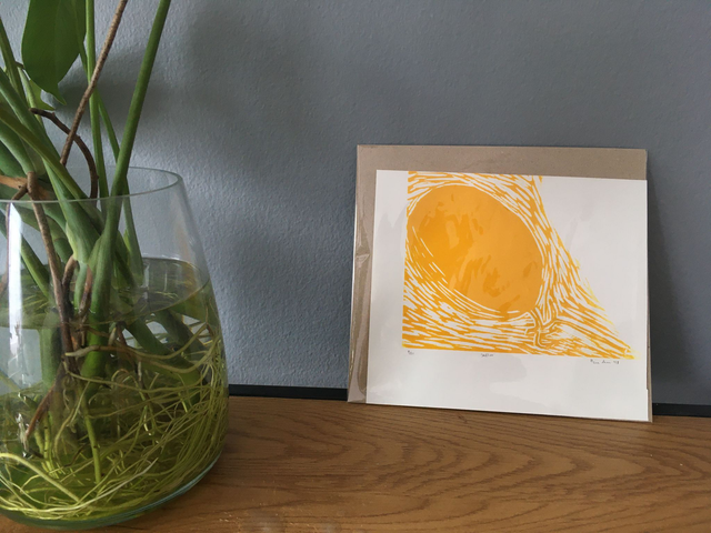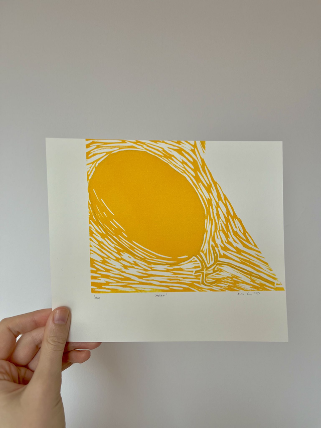1 of 10 original, handmade woodcut prints on paper. There is some small variance between the same prints because of the handmade nature of printing; the images are indicative of the finished print you will receive. Please note that if mounting the image for framing, some of the edge of the print will be covered as it is up to the edge of the paper.